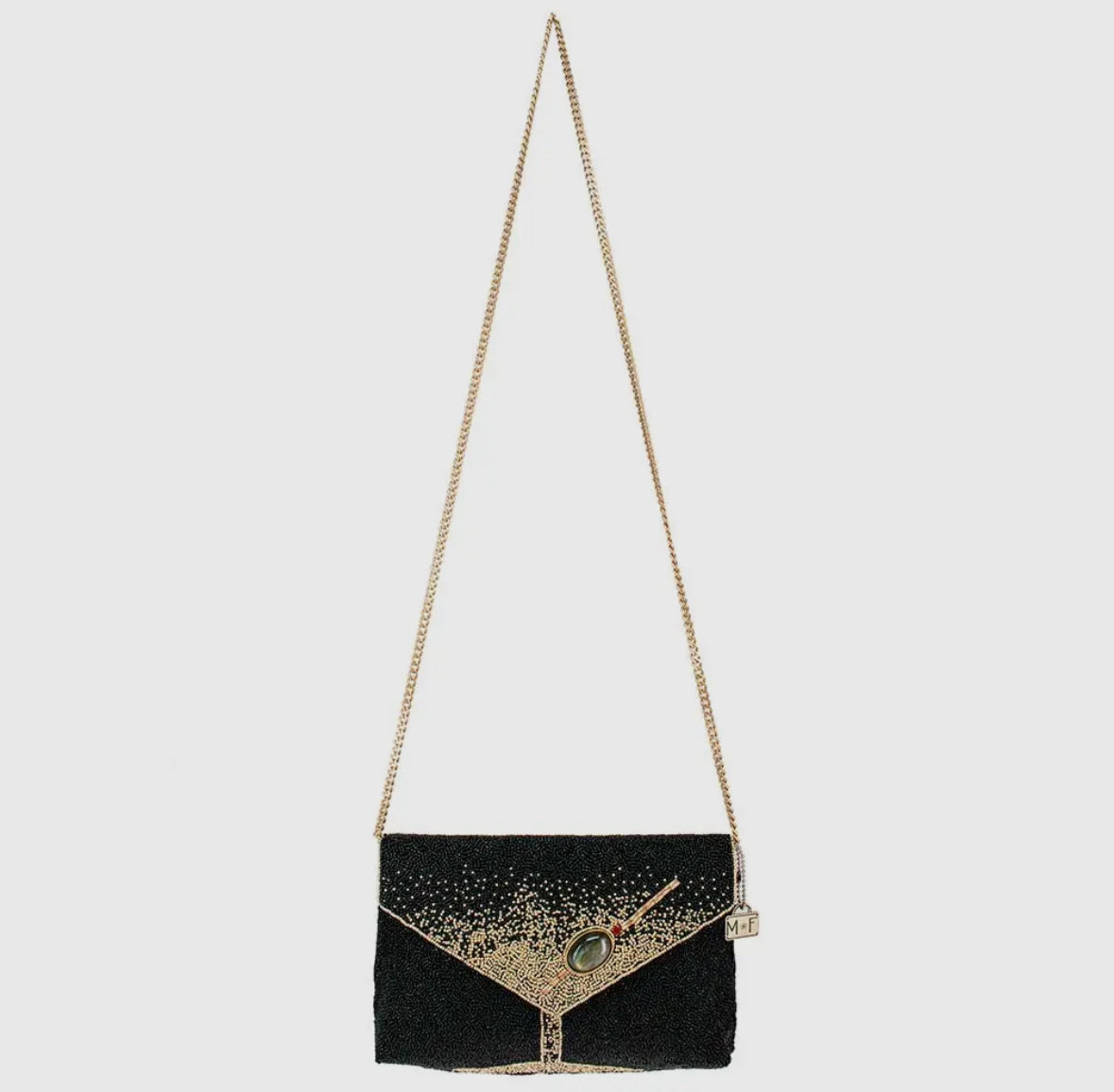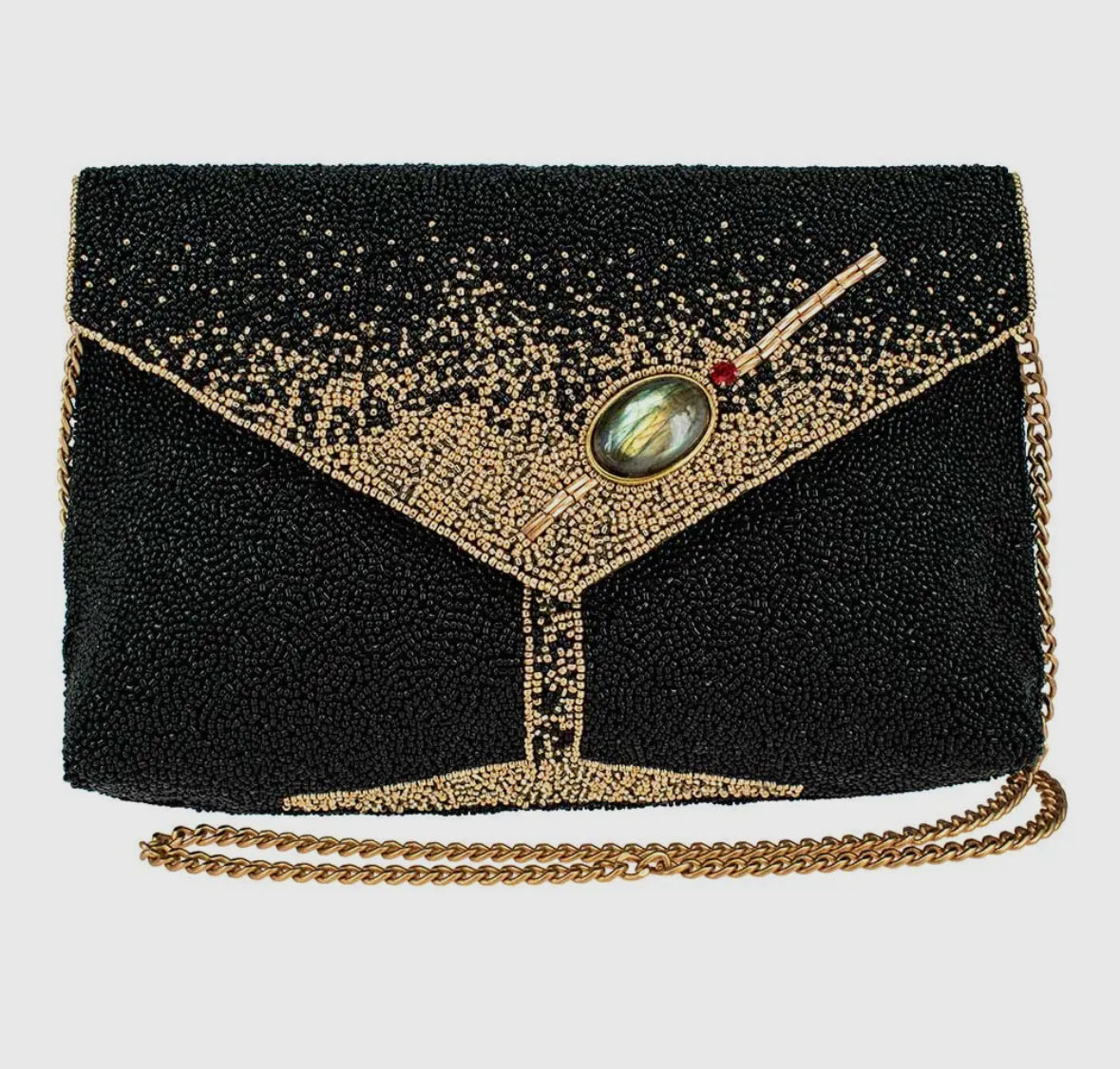Olive You Beaded Martini Glass Clutch with a Natural Labradorite Gemstone.
