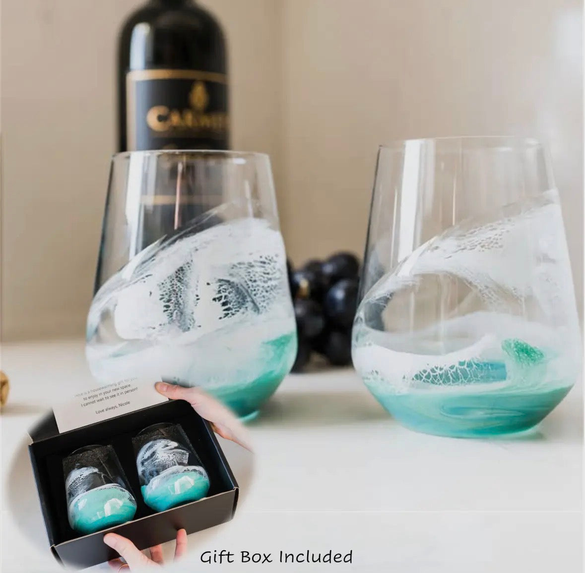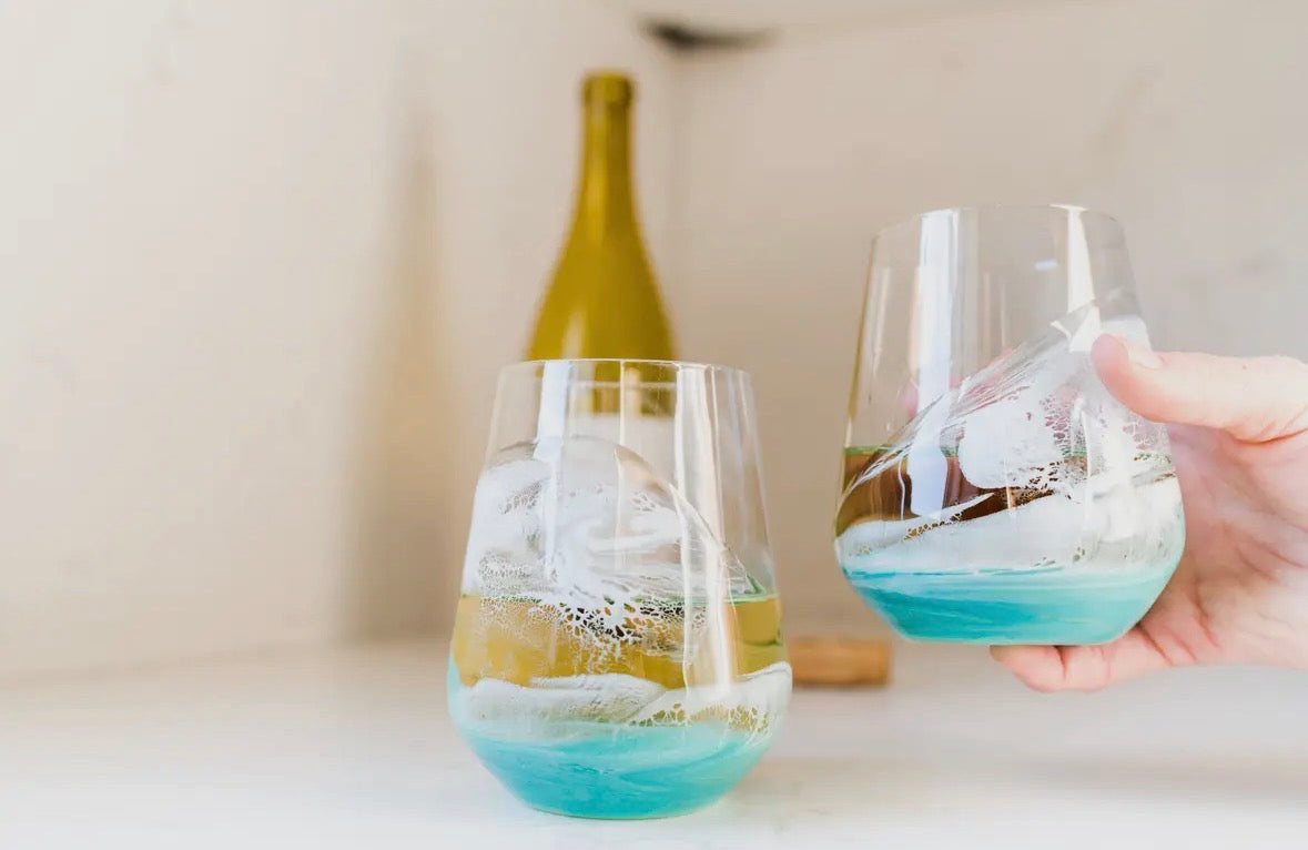 Set of 2 Resin Accented Wine Glasses - Caribbean Blue